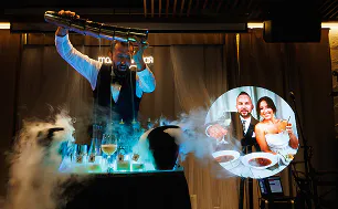 Виртуозный танец с бокалами и шейкерами откроет Ваш праздник ЛЮБВИ. Искрометный перфоманс с огнем и льдом, напитки для молодоженов, завораживающее жонглирование. Каждый коктейль будет приготовлен с грацией и мастерством. Это искусное бармен- шоу на свадьбу станет ярким акцентом в честь Вашего союза.