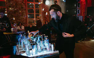 Бармен одет в стильный костюм, который подчеркивает его профессионализм и добавляет шоу индивидуальности.
