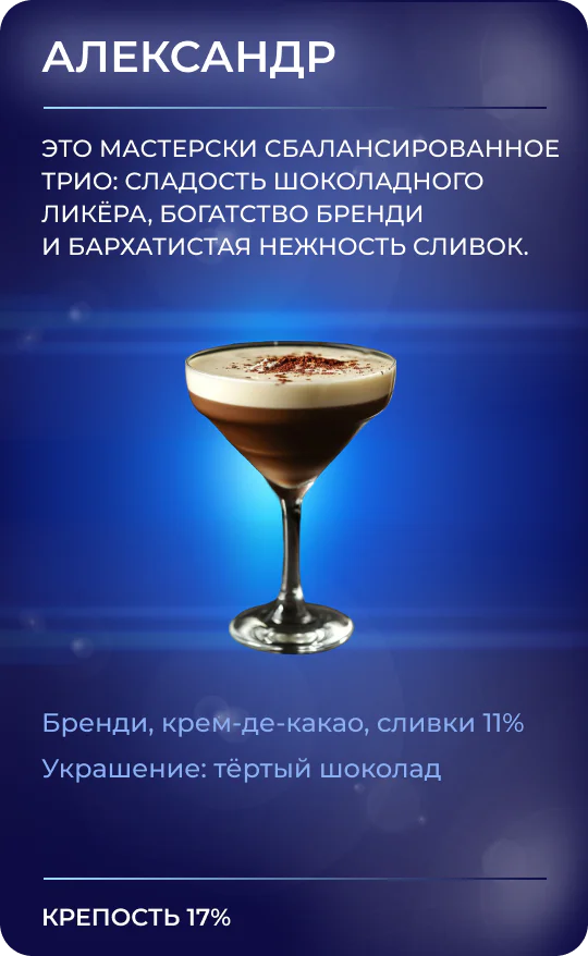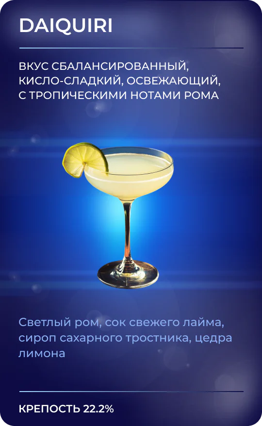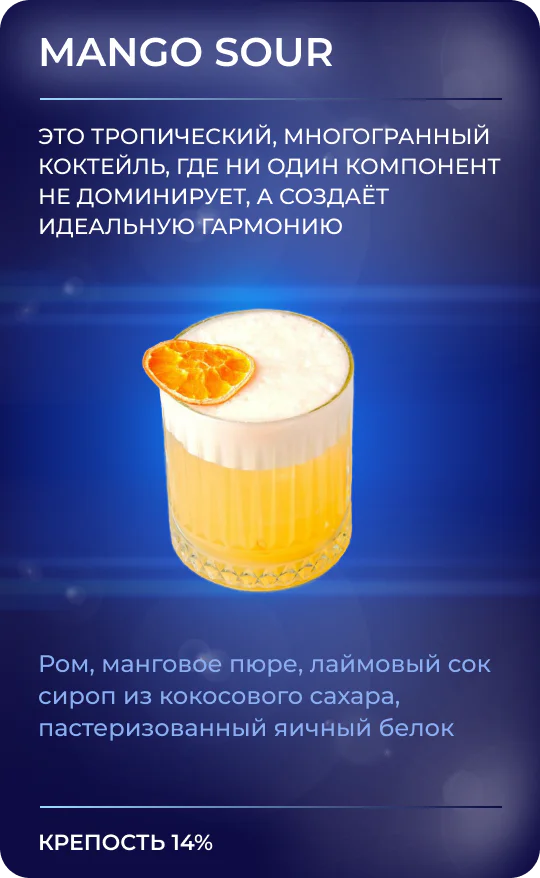 - Используется исключительно оригинальный качественный алкоголь от проверенных поставщиков, свежие фрукты, собственные сиропы и соусы премиум-класса.