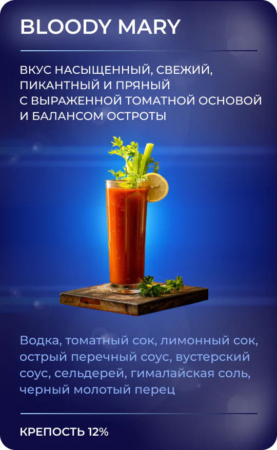 - Сбалансированные Кровавые Мэри с идеальной остротой