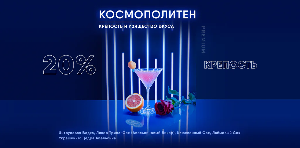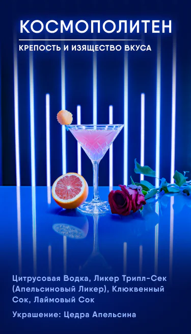 Каждый ингредиент тщательно отобран. Используем исключительно элитный алкоголь, авторские настойки, свежие соки прямого отжима и премиальные ликеры.