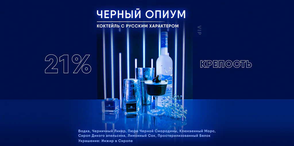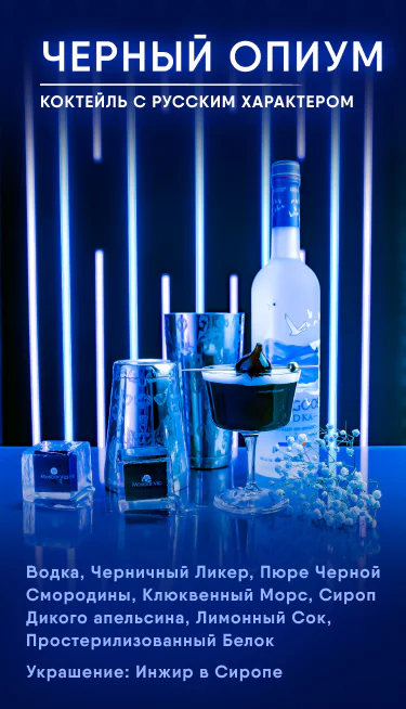 - До мощного коктейля «Черный опиум» с исконно русским характером и легендарного «Писко Сауэр», приготовленного по секретной технике.